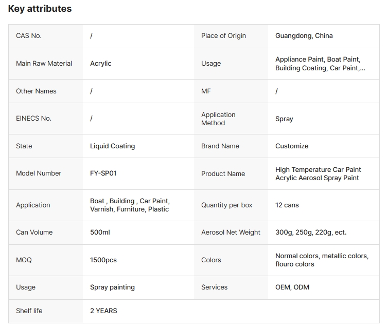 Fabrikamıza hoş geldiniz, yüksek sıcaklığa dayanıklı renk sprey boyasının önde gelen tedarikçisiyiz. Özel formülümüz, canlı ve uzun ömürlü renkler sağlarken aşırı sıcaklıklara dayanabilir.